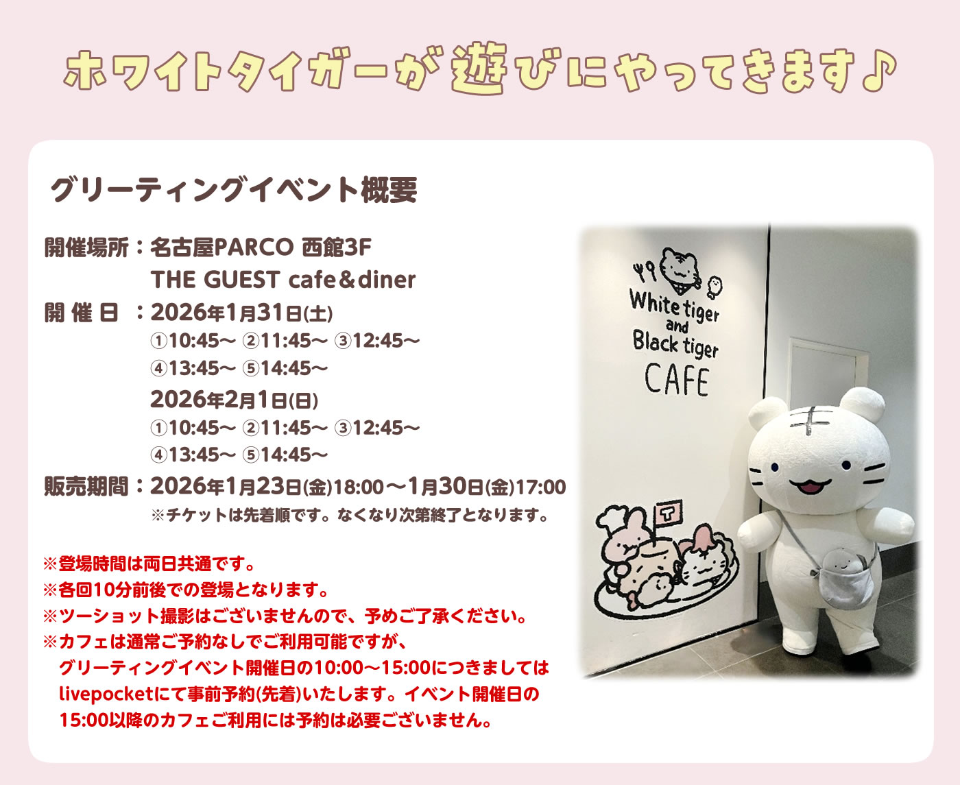 「ホワイトタイガーとブラックタイガーカフェ@名古屋PARCO」2026年1月29日(木)~3月9日(月)
